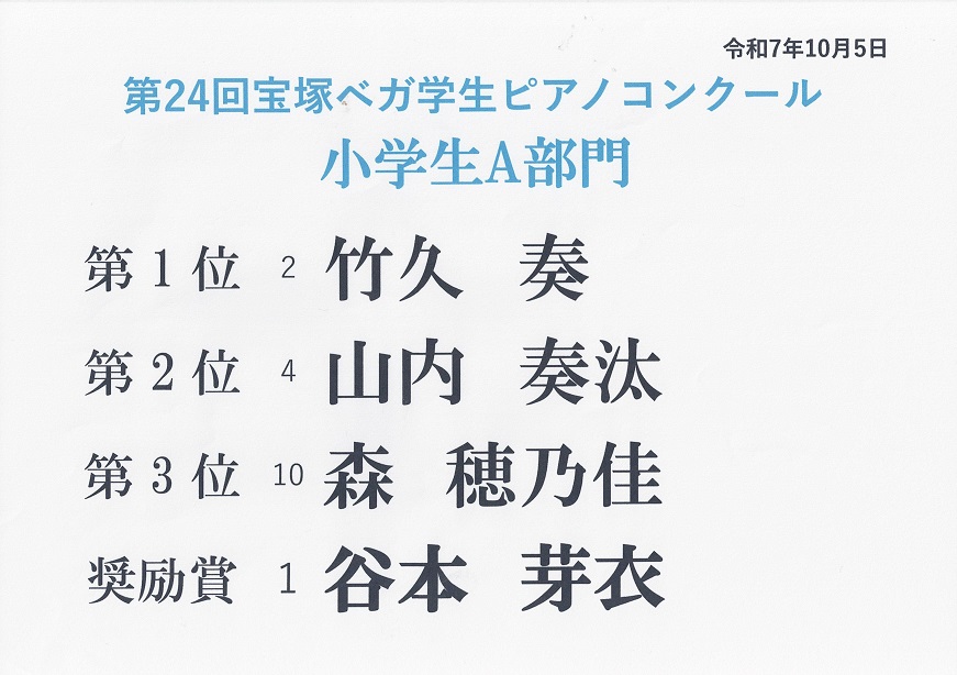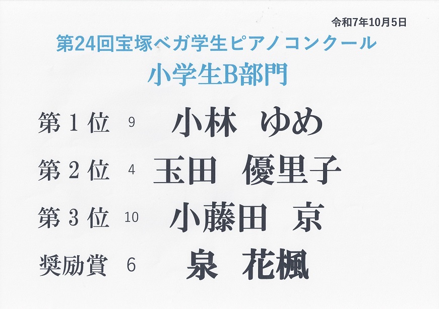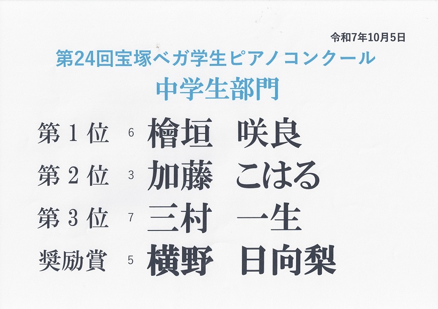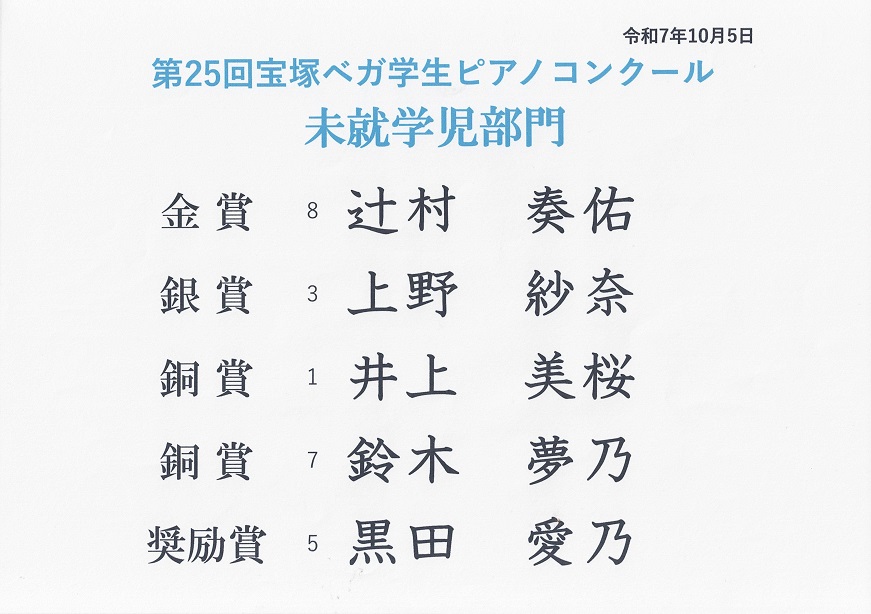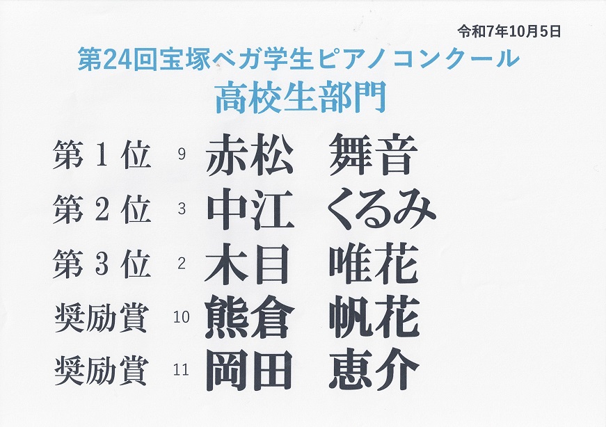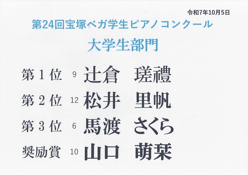 宝塚ベガ学生ピアノコンクールにご協賛いただき、心よりお礼申し上げます。