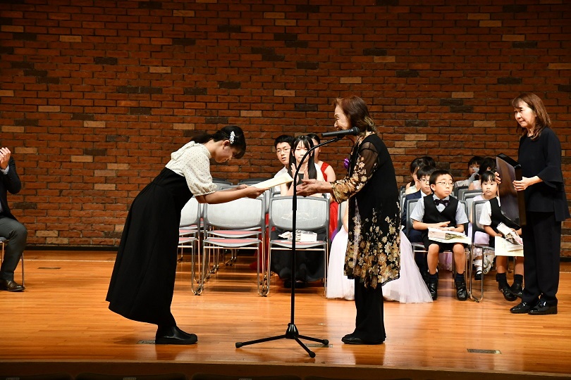 宝塚市の森臨太郎市長より宝塚市長賞、正司泰一郎様からローズ音楽賞、佐野寿子様からサファイア賞、新響株式会社(田中雅哉様)より新響楽器オーパス店特別賞、玉田絵美様からTAMADA MUSIC SALON賞が贈られました。